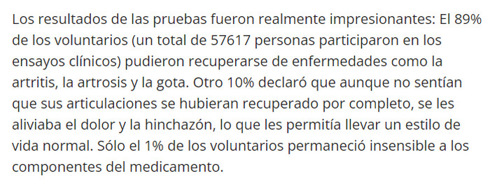 - Eliminó el dolor y la incomodidad en las articulaciones.