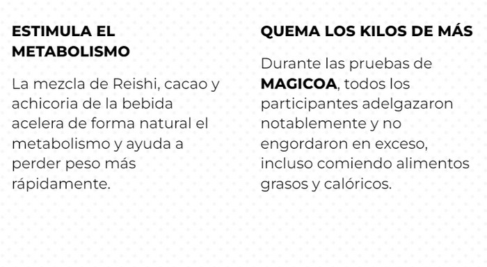 En este artículo podrás leer sobre qué Magicoa es, cómo funciona el producto, cuáles son los beneficios del producto, para qué sirve Magicoa, cómo utilizar Magicoa según las instrucciones de uso, donde comprar Magicoa, donde la venden y cuál es el precio de cápsulas en Venezuela. También analizaremos testimonios, comentarios y opiniones reales sobre Magicoa en los foros.