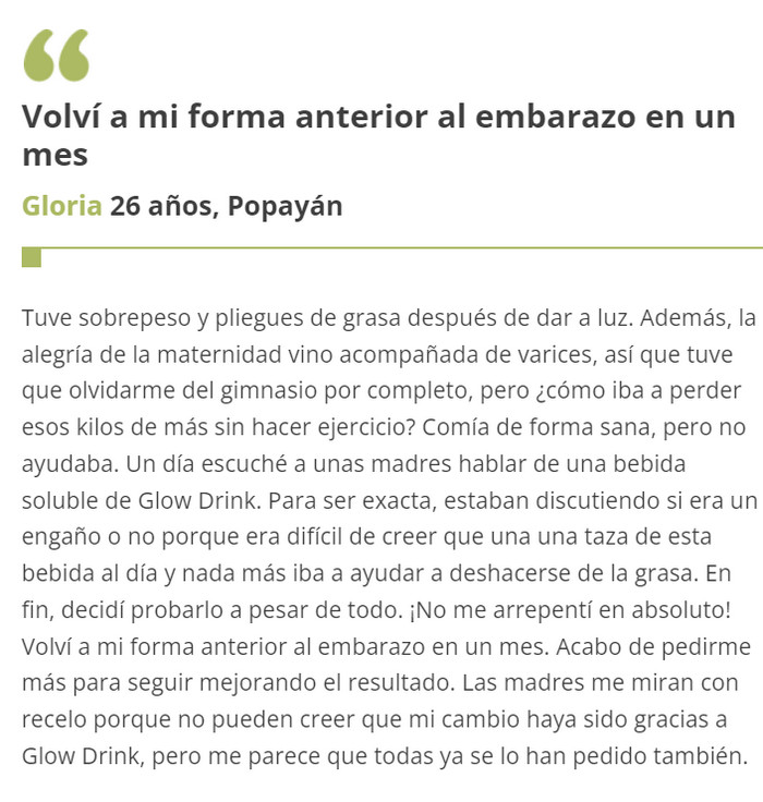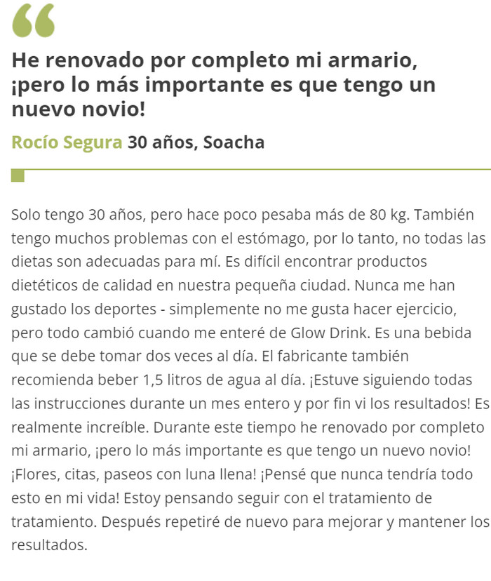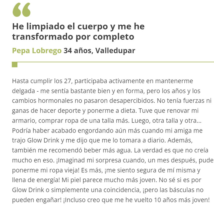 En esta reseña veremos que es Glow Drink, cómo funciona el producto, para qué sirve, cuáles son las ventajas del producto sobre sus análogos en Colombia que no funcionan, cómo utilizar Glow Drink según las instrucciones de uso, donde comprar, donde la venden y cuál es su precio de Glow Drink. También leeremos testimonios, comentarios y opiniones reales sobre Glow Drink en los foros.