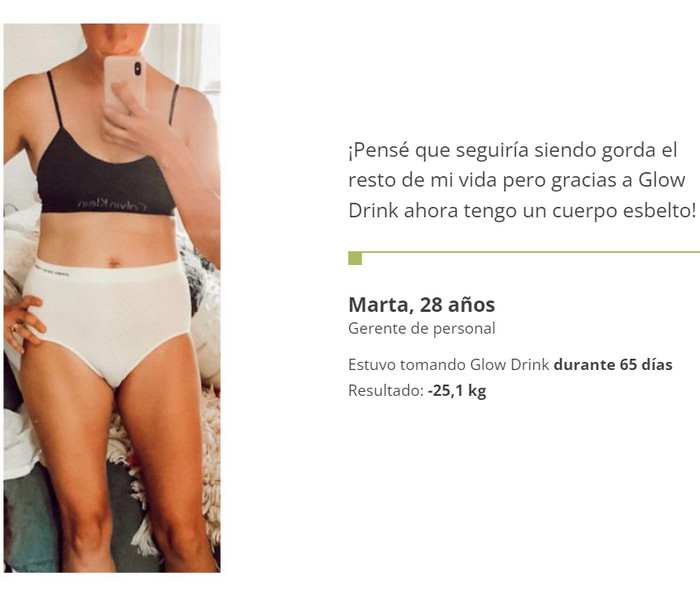 Los nutricionistas coincidieron en que con Glow Drink puedes normalizar tu peso de forma cómoda y segura a cualquier edad, independientemente del sexo.