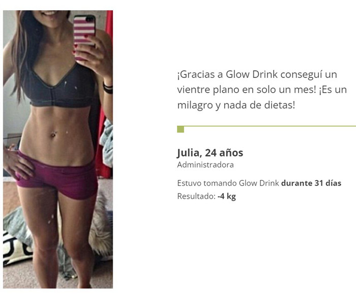 ¿Sueñas con adelgazar sin problemas? Entonces te aconsejamos que prestes atención a Glow Drink. Este es el primer programa profesional de pérdida de peso que tiene bajo costo pero altos resultados. Ser bella es fácil, ¡lo principal es empezar a tiempo!