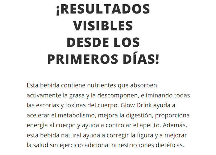 Glow Drink es un producto especial en forma de polvo, gracias al cual la pérdida de peso se produce de forma suave y sin estrés para el cuerpo.