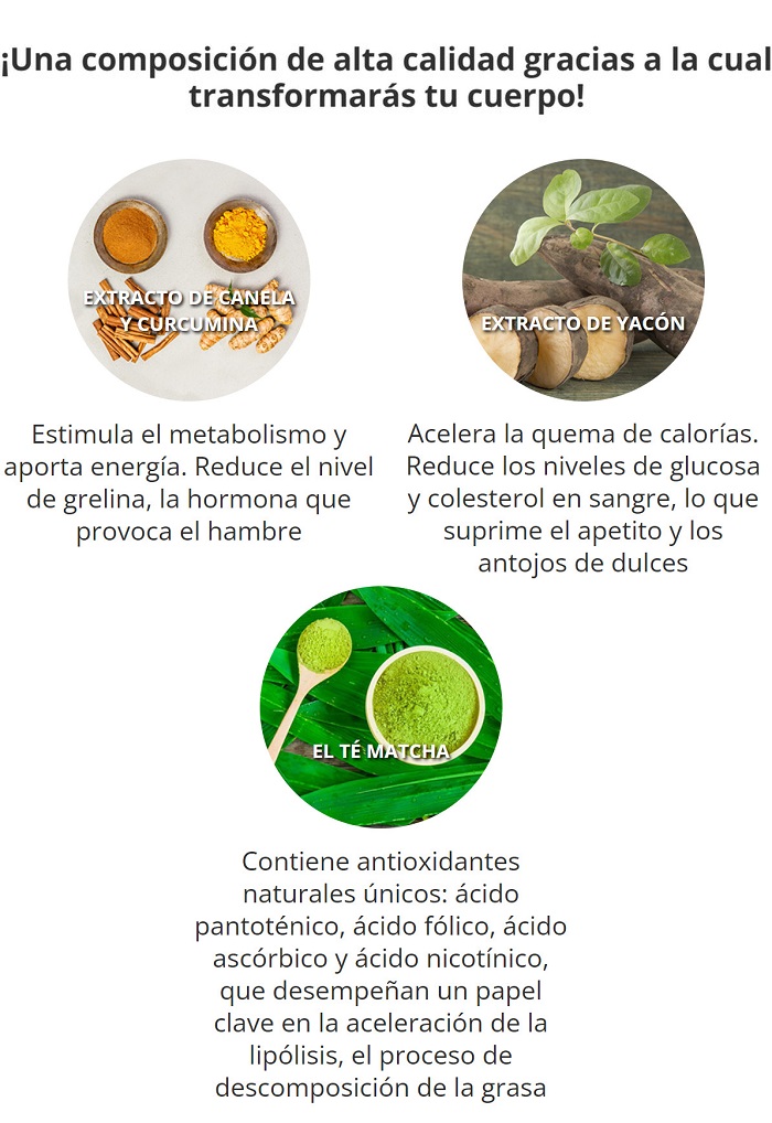 - Pérdida de peso: el té Matcha, combinado con otros ingredientes naturales, estimula el metabolismo, lo que favorece una rápida pérdida de peso.