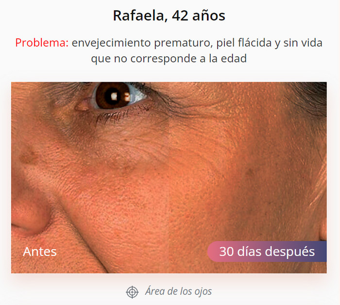 Con el uso del suero, el funcionamiento de las glándulas sebáceas se normaliza, en las mujeres mayores de 30 años desaparecen las ojeras, los poros dilatados, los brillos grasos, el acné y el enrojecimiento. En la categoría de edad mayor de 40 años, además de lo anterior, la gravedad de los cambios relacionados con la edad disminuye gradualmente. Las arrugas, las bolsas debajo de los ojos y la hinchazón desaparecen.