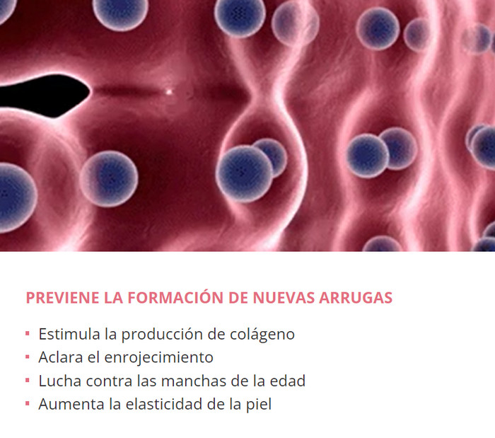 - Tiene un efecto antioxidante, normaliza la producción de elastina y colágeno.