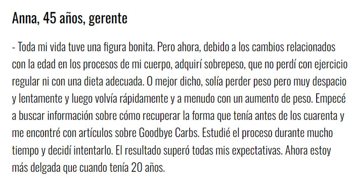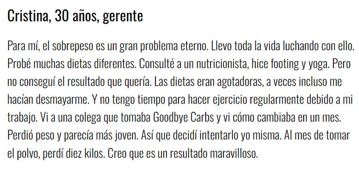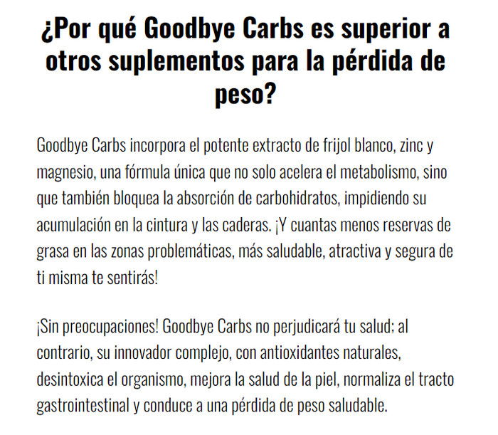 Goodbye Carbs ingredientes, no funciona, comentarios, instrucciones de uso, foro