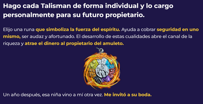 Opiniones de clientes reales afirman unánimemente que los amuletos mágicos resolvieron las dificultades financieras en un momento: lograron superar crisis y pozos de deuda, obtener el reembolso de deudas incobrables y ganar con un billete de lotería comprado al azar. Las mejoras no sólo conciernen a la esfera material, sino que también atraen la felicidad, la fuerza y el amor. Las personas conocedoras afirman que la base del éxito en el uso de un amuleto es la fe en su eficacia. Sin efectos secundarios ni contraindicaciones.