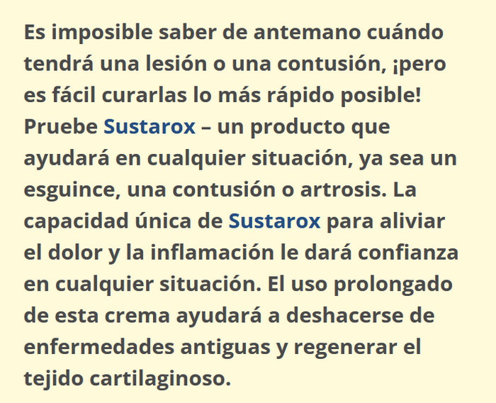 El material de este artículo te ayudará a responder preguntas como que es Sustarox, cómo funciona el producto, para que sirve, cómo usarlo según las instrucciones de uso, cuáles son los beneficios del producto, donde comprar, donde lo venden Sustarox en México y cuáles son sus precio. Lea también testimonios, comentarios y opiniones reales sobre Sustarox en los foros y pagina oficial.