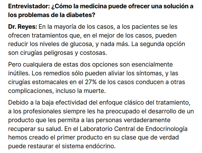 El método tradicional utilizado para prevenir la enfermedad son las inyecciones de insulina para llevar la cantidad de hormona a la cantidad requerida. La etapa inicial de la enfermedad se caracteriza por la estimulación fármaco de una disminución en los niveles de glucosa. Al mismo tiempo, el producto no afecta la causa misma de la enfermedad. Bioactivo isoténico Diamin funciona con un principio diferente, ayuda al cuerpo a producir insulina. La estimulación de la actividad del páncreas conduce a una mejora en el metabolismo, estabiliza el nivel de glucosa.