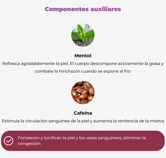 - Un componente vegetal con un intenso efecto venotónico. Elimina la sensación de fatiga, pesadez, ardor en las extremidades.