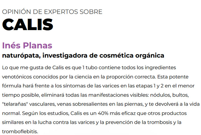 Las opiniones positivas de los clientes Calis confirman que este gel es realmente eficaz para prevenir las varices. Como asegura el buen sexo, la pomada actúa de forma eficaz y rápida, devolviendo a las venas un aspecto saludable.
