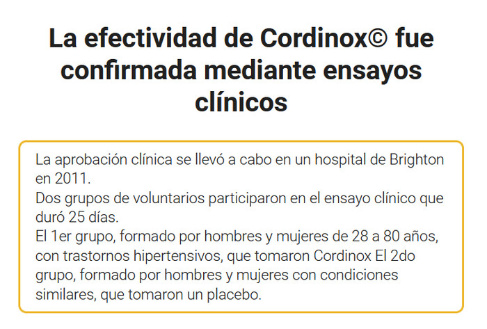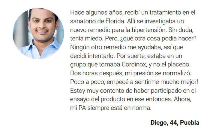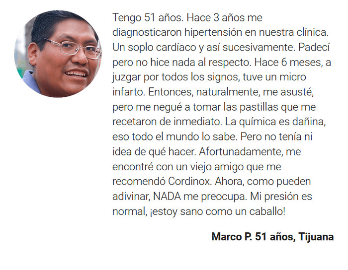 Al tomar Cordinox, tiene la oportunidad de deshacerse de la hipertensión. Estabilizar la presión arterial es el primer paso hacia la salud. A continuación, se activa el efecto prolongado del fármaco, lo que permite a los pacientes vivir sin temer por sus vidas.