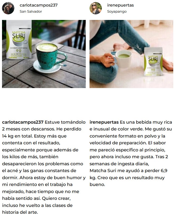 ¡Es fácil asegurarse de que esta bebida realmente le ayude a perder peso leyendo las opiniones de los clientes Matcha Suri! Como afirman hombres y mujeres, la ingesta de este cóctel favorece la pérdida de peso y una transformación general del aspecto.