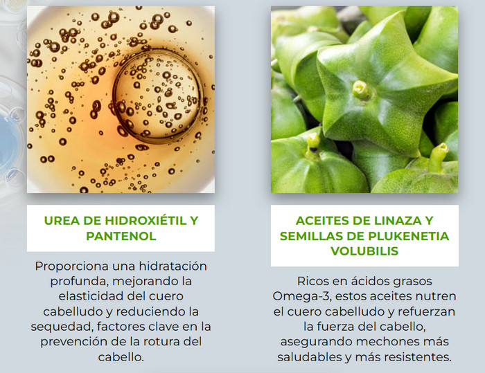 - Hidroxietilurea: puede contribuir a la hidratación y nutrición del cuero cabelludo. Este componente ayuda a mejorar el estado de la piel, reduciendo la sequedad y el picor, creando un ambiente saludable para el crecimiento del cabello