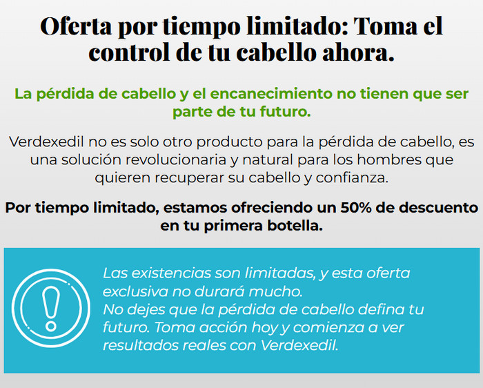 Actualmente, en el sitio oficial hay una promoción que permite adquirir Verdexedil a un precio reducido. Es una excelente oportunidad para probar el producto Verdexedil y comprobar sus beneficios.