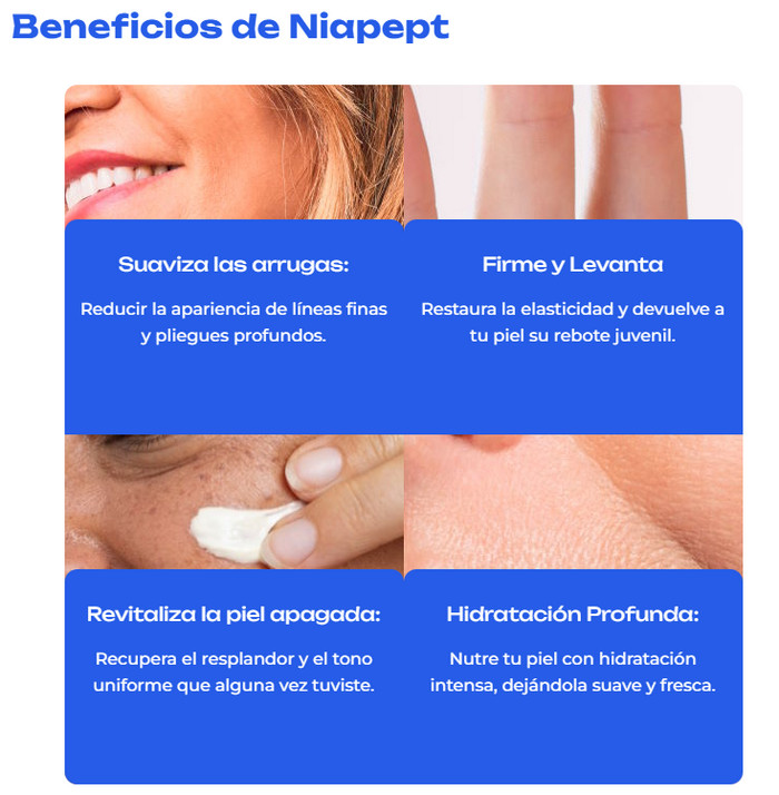 - Pérdida de firmeza: Con la edad, la piel pierde su elasticidad. Niapept puede ayudar a restaurar la firmeza y tensar la piel, dándole un aspecto más juvenil