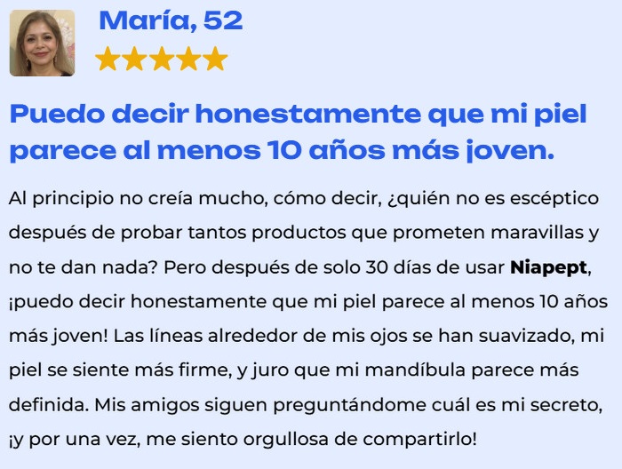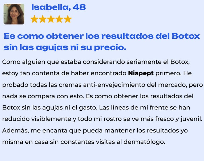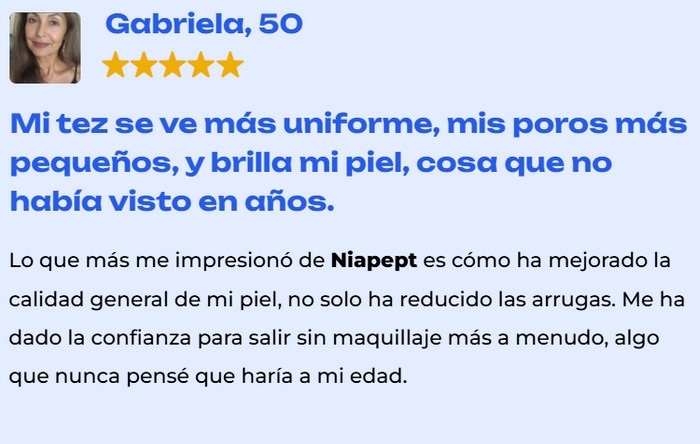 Algunas reseñas enfatizan que Niapept ayuda a mejorar el tono de la piel, dándole un brillo saludable y un tono uniforme.