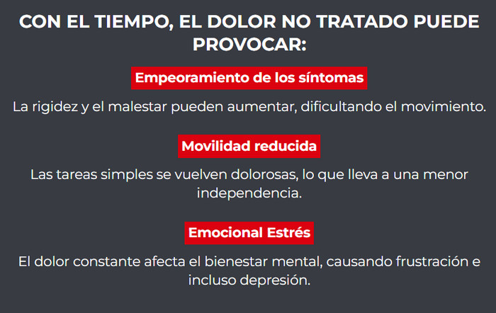 - Movilidad reducida: el dolor en las articulaciones impide moverse con libertad, convirtiendo acciones simples, como subir escaleras o agacharse, en un desafío