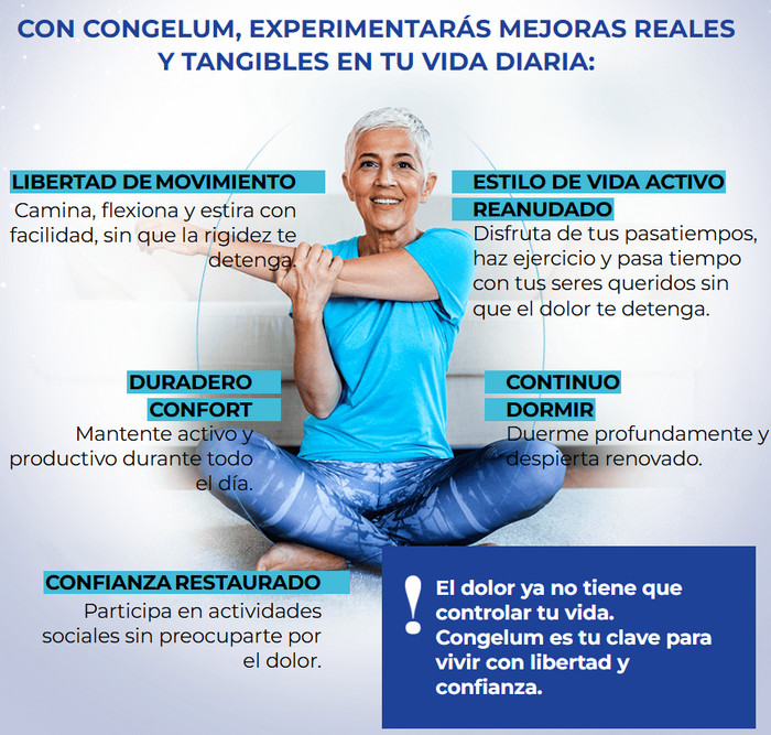 A diferencia de otros productos en el mercado, Congelum no solo enmascara los síntomas, sino que actúa a un nivel más profundo. Usar Congelum no es solo aplicar una crema, sino un auténtico ritual de cuidado personal que mejora el bienestar general. Gracias a su rápida y profunda acción, Congelum se ha convertido en un aliado imprescindible para quienes buscan mantener su cuerpo en buen estado y aliviar el dolor, sin importar el nivel de actividad diaria.