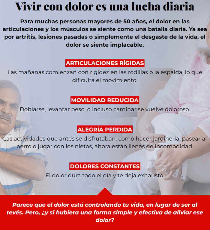 Muchas personas sufren problemas en las articulaciones y dolores corporales que representan un obstáculo para una vida activa. Estas molestias pueden surgir por diversas razones, como el envejecimiento, lesiones, enfermedades o fatiga excesiva. Los problemas articulares dificultan las actividades cotidianas, como caminar, levantar objetos o incluso moverse con normalidad, y a menudo van acompañados de inflamación, hinchazón, dolor y rigidez.
