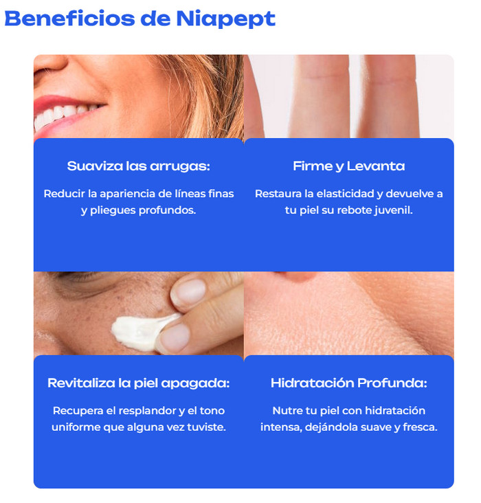 Niapept es un cuidado innovador, desarrollado para quienes desean conservar la belleza natural sin procedimientos complejos. Su fórmula está dirigida a la hidratación profunda, alisado de arrugas y protección contra los factores externos. ¿Cómo funciona exactamente este producto, cuáles son sus beneficios Niapept y por qué merece tu atención? Vamos a descubrirlo en detalle. También exploraremos los componentes que lo componen, cómo actúan y donde lo venden Niapept.