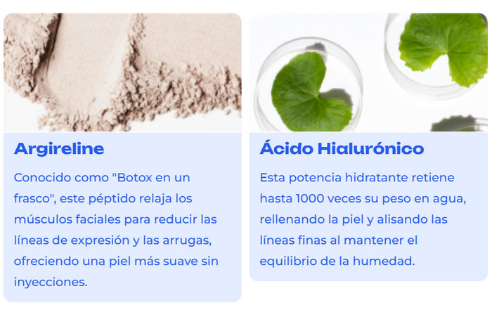 - Hidratación profunda: el ácido hialurónico hidrata las células, evitando la sequedad y la sensación de tirantez