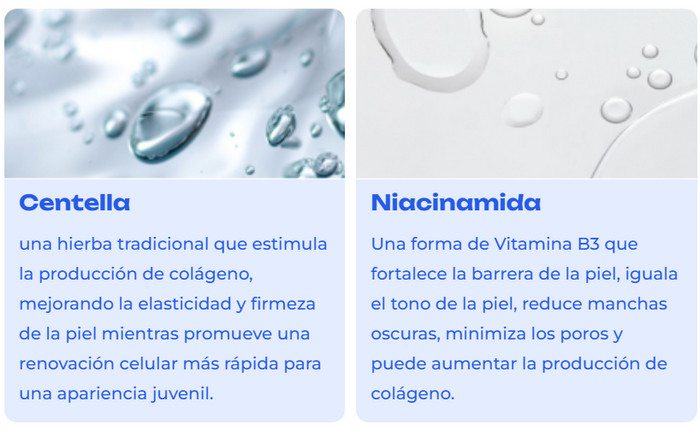 - Unificación del tono y la textura: la niacinamida ayuda a aclarar las manchas pigmentarias y a suavizar la piel