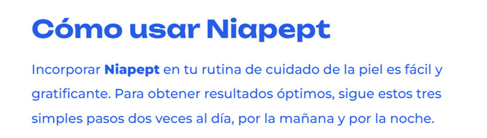 Instrucciones de uso de Niapept: ritual de cuidado de la piel