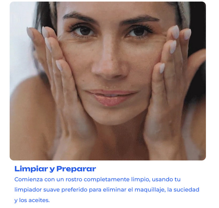 - Limpieza: comienza con un lavado facial. Elimina el maquillaje, las impurezas y el exceso de sebo para que los componentes activos de la crema penetren más profundamente y actúen mejor