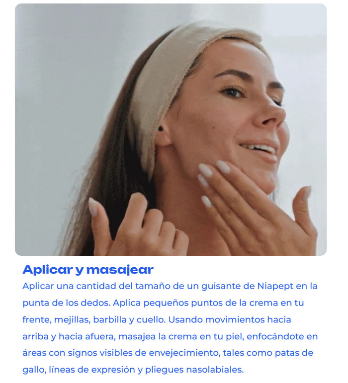 Niapept es más que una crema. Es un ritual diario que ayuda a la piel a mantener su frescura, firmeza y apariencia cuidada. Para que el producto funcione de manera más eficaz, sigue estos sencillos pasos: