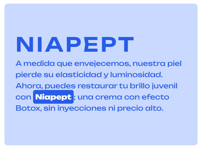 - Alisado de arrugas: los ingredientes activos de Niapept relajan los músculos faciales y ayudan a reducir la intensidad de las arrugas