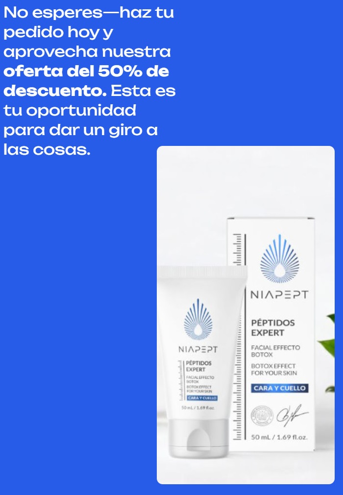 Niapept no se vende en Walmart, Mercado Libre ni Amazon, pero puedes encontrarlo en el sitio web oficial del fabricante, donde se garantiza la autenticidad y las mejores condiciones de compra. No pierdas la oportunidad de mejorar tu piel con Niapept, mientras el precio de la crema está reducido gracias a una oferta.