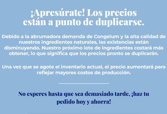 No se vende en farmacias ni en Amazon: la única forma confiable de adquirir Congelum es a través de su página oficial, donde además puedes aprovechar descuentos y promociones especiales.