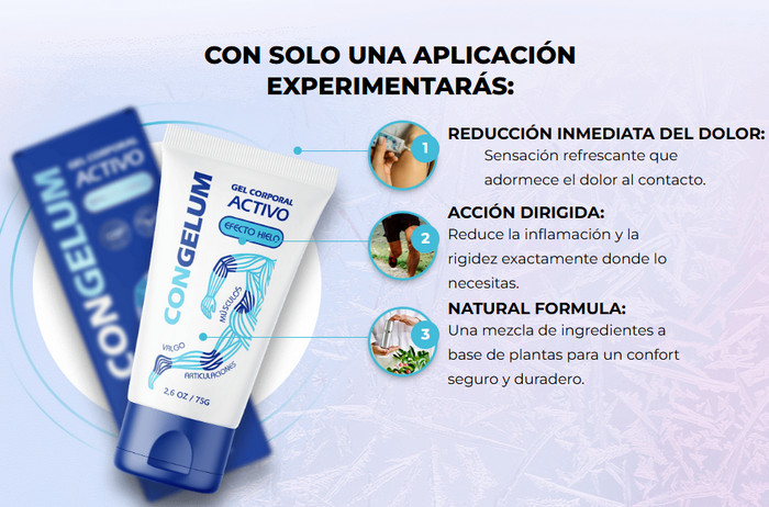 El dolor en músculos y articulaciones no tiene por qué frenar tu día. Congelum, una crema innovadora, brinda alivio rápido y fácil de aplicar, ayudando a recuperar la comodidad y libertad de movimiento en poco tiempo.