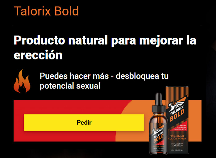 Talorix Bold se presenta como un suplemento en gotas de origen natural, concebido para revitalizar la potencia masculina, incrementar la energía vital y optimizar el rendimiento tanto físico como mental. Gracias a su fórmula cuidadosamente elaborada, Talorix Bold funciona de manera integral: potencia el deseo sexual, mejora la circulación en la zona pélvica, refuerza la firmeza de las erecciones y prolonga la resistencia en la intimidad. Además, estimula la producción natural de testosterona, equilibrando las funciones hormonales, mientras ayuda a reducir el estrés y eleva el ánimo, proporcionando una sensación global de bienestar, seguridad y confianza en cada aspecto de la vida masculina.