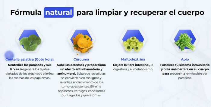 - Centella asiatica (Gotu Kola): Un poderoso aliado vegetal que ayuda a neutralizar parásitos y sus larvas, al mismo tiempo que promueve la regeneración de tejidos dañados y contribuye a eliminar marcas de papilomas, apoyando la recuperación integral del organismo desde el interior.
