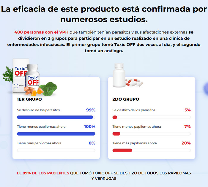 - Uso seguro y natural, ya que la mayoría confirma que Toxic OFF actúa eficazmente sin provocar efectos secundarios relevantes.