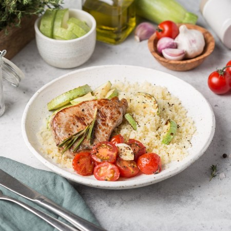 Lomo de cerdo con couscous y manzana